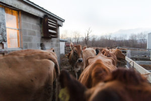 Trepidation would be an understatement for what I was feeling as I slipped and slid behind Rose Hubbert across “the frozen tundra” between the house and barn at her Back to the Future Farm in Orange County on a late morning in mid-December. I could sooner give up wine than milk, and I was about to come literally face-to-face with the source of my essential daily drink. In these days of ag-gag laws, did I really want to see where the essential white stuff comes from?