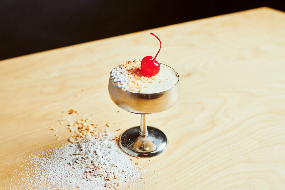 When you peruse the cocktail menu, you’ll notice this drink is the only one under “nonalcoholic.” but it’s so good, you won’t miss the lack of choice. Though the base of this drink is club soda, it packs genuine flavor: its raspberry purée is sweet, yet tart, but that deep red berry intensity is brightened by aromatic rosemary syrup and lemon juice. It is, in my opinion, a perfect aperitif.