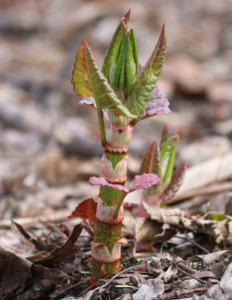 A cultivation exception is Japanese knotweed (currently referred to as Reynoutria japonica but also known as Polygonum cuspidatum and Fallopia japonica). Planting it is irresponsible and, in some countries, illegal. Its dense thickets choke out other plants and contribute to stream bank erosion. A fortune is spent trying to eradicate it, in the city and neighboring countryside. But its tender April shoots are a tart spring vegetable, lemon sour and melting in heat, much like sorrel. It’s everywhere, so why not market it? You can even find it at Violet Hill Farm‘s stand at the Union Square Greenmarket.