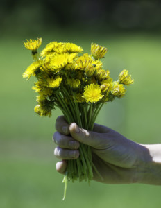 The ground hugging early spring rosette of dandelions (Taraxacum officinale), still attached to the top of the taproot, is a morsel that rivals puntarelle, a sought-after cultivar of chicory (Cichorium intybus). Later, the leaves and the flowers follow. Dandelions are best grown from seed as their taproot makes them very hard to transplant.