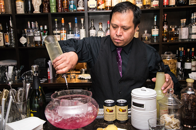 “I did a few things with the different fruits. That day we tried some of the mango, some with mango, some with apricots, some passion fruit as well and all of them were very, very good,” says Miguel Aranda, Boticarios’s head bartender. “I just liked the raspberry the best.”