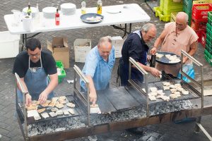 Just when I felt myself swept up in the romance of communal cooking and revelry, I noticed some unrest erupt in the kitchen that required immediate attention. It seemed one giant paella was skimpy on the seafood, an unforgivable sin in a world where seafood is the raison d’etre. That one abject dish, shamefully heavy on the rice, brought my jolly table down from their high. The culprit would not fess up, and the mood turned rather dark (remember, as jolly as they were, these people had been drinking all day). It was not all fun and games, after all—but it was all delicious.