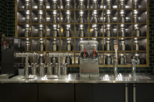 One of the most unique parts of the setup is the gorgeous tea bar plus open kitchen, which makes the whole establishment feel approachable. “We worked with Harumi Isobe at Blank Design to create the space here,” says chef Mak. “We have large windows so there’s lots of natural sunlight during the day to create a brighter space. The back wall is filled with golden yellow Chinese decor consisting of a dragon, flower and the Chinese character for ‘luck’.”