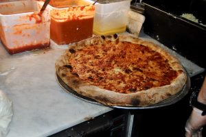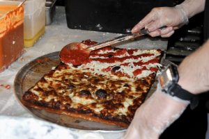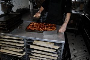 “Everything you see here is totally my take,” Frank Tuttolomondo, the owner of Mama’s Too, told me one evening at the shop. “It’s a very different kind of slice… for the most part, we have our own pizza. We don’t have a name for it.”