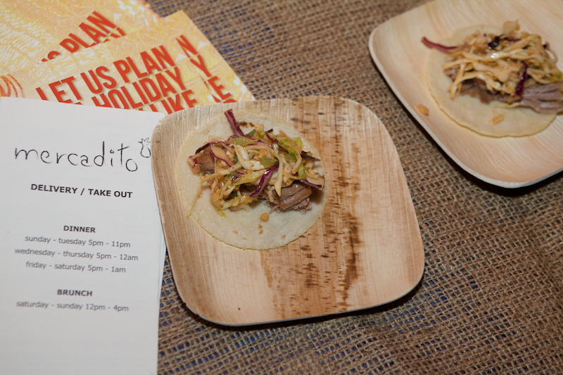 South America and South Africa were tasted, with Crispas from Palo Santo and Malva Pudding from Madiba. Basque country meant Gildas from Txikito, and Mexico Carnitas Tacos with Braised Pork, Mexican Style Coleslaw and Chopped Peanuts from Mercadito. Then there were the Philippines with a nori “taco” made with Philippine Heirloom Rice, Heritage Pork Adobo and Salad of Bittermelon, Guava and Radish from Purple Yam. And New York State with wine from the Shawangunk Wine Trail, whiskey from Tuthilltown and Cauliflower Gratin made with New York State’s Organic Valley milk.
