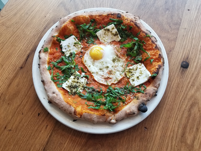 “We had a few ideas before, but the shakshuka just made sense,” Admony says. “Simone’s dough is the best I’ve ever had, especially if it’s a spicy marinara. This dough is very unique, and I’ve worked with many. It’s very forgiving and one of the best dough.”