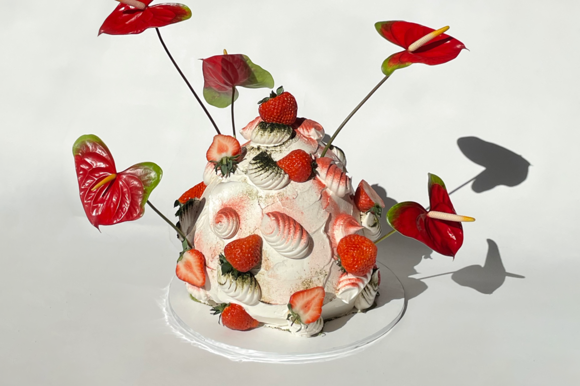Carnal cravings aside, the bakers themselves believe the appetite for their confections comes down to unmet platonic desire. “Post-lockdown, there was a lot to catch up on with loved ones.” says Lulu Prat of @bodegacakes of the moment her business took off. “Whether it’s jovial or somber, a beautiful cake brings a certain amount of happiness with it, it’s the focal point at a party and a great way to bring people together.” Billie Belo of @cakes_for_no_occasion, agrees. “People want to create moments that are special right now, and they don’t want everything to look the same. It’s the opposite of the uniform, corporate, capitalist system they’ve fallen out of trust with and feel used by—there’s a human element here. These cakes look and feel entirely handmade.”