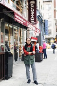 “We lasted 17 years,” she says. “I’m very proud of it. He gave me a stage to do my thing. We had an awesome brunch.” The menu was seasonal, especially after she started going to the farmers market in Warwick near her weekend house. Instead of using tomatillos and other imports from Mexico and California, she switched to famed grower Cheryl Rogowski’s produce; she added pasture-raised eggs and fair trade coffee. By the end she was serving her own heirloom tomatoes in salads, grown in her garden. “It was a full circle experience for a chef.” The circle expanded even more when she brought the shiso she had grown last summer to stock the fresh-food case at Kalustyan’s.